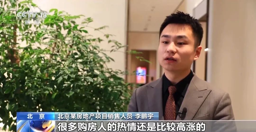 北京某房地产项目销售人员李鹏宇:从目前初步统计,来访将近一百四五十组这样的一个到访量,不算周末这还只是工作日,目前对于我们这种改善盘来讲的话,很多购房人的热情还是比较高涨的。