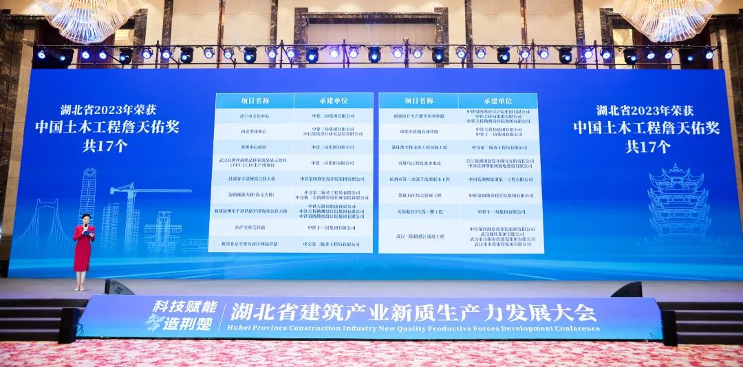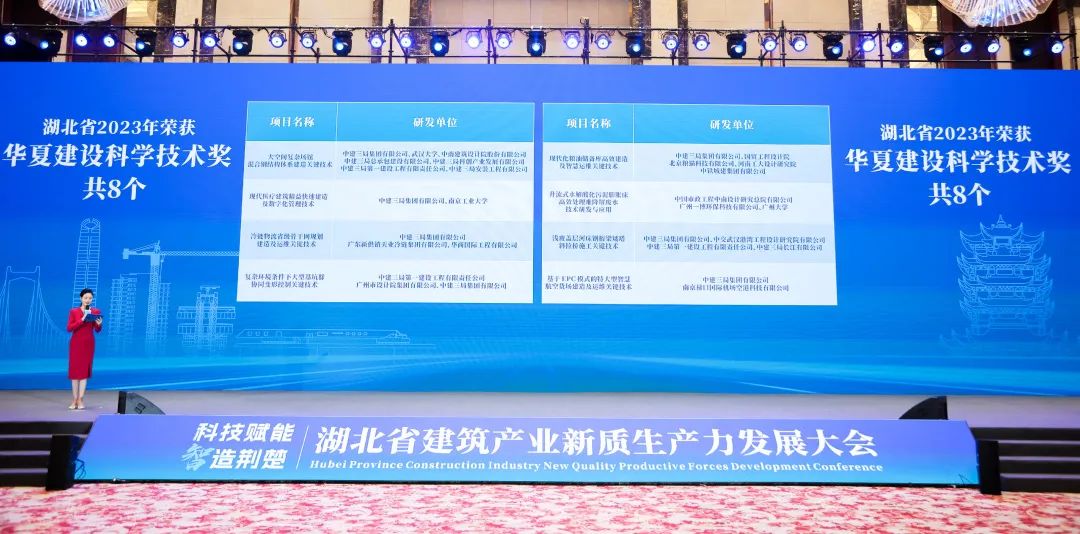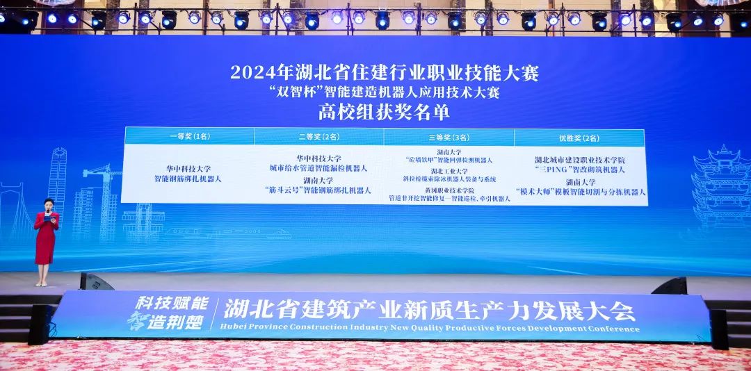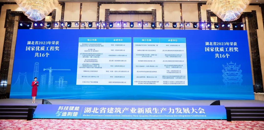 大会观看了《何以建造》宣传片,发布了《2023年度湖北建筑业发展报告》,通报了湖北省2023年度鲁班奖、国优奖、詹天佑奖、华夏奖项目,汉芯公馆智能建造示范项目成果和“双智杯”湖北省智能建造机器人应用技术大赛获奖作品,集中展示了湖北智能建造在勘察设计、生产施工、运营维护全产业链的国之重器、核心科技和创新项目。