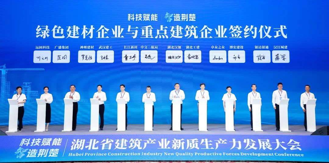 会上启动“十大建筑科技攻关课题”揭榜仪式,介绍了湖北省住房供应链、智能建造供应链、绿色建材供应链3大供应链系统,解读了《湖北省推进建筑和市政基础设施设备更新工作实施方案》,见证了6家绿色建材企业与重点建筑企业签约,开启发展新赛道,带动行业新一轮的转型升级。