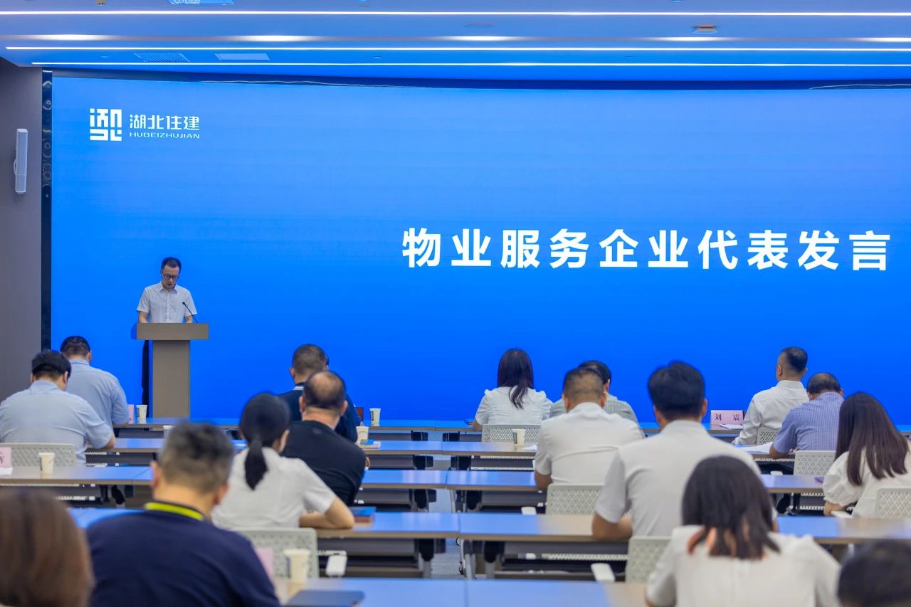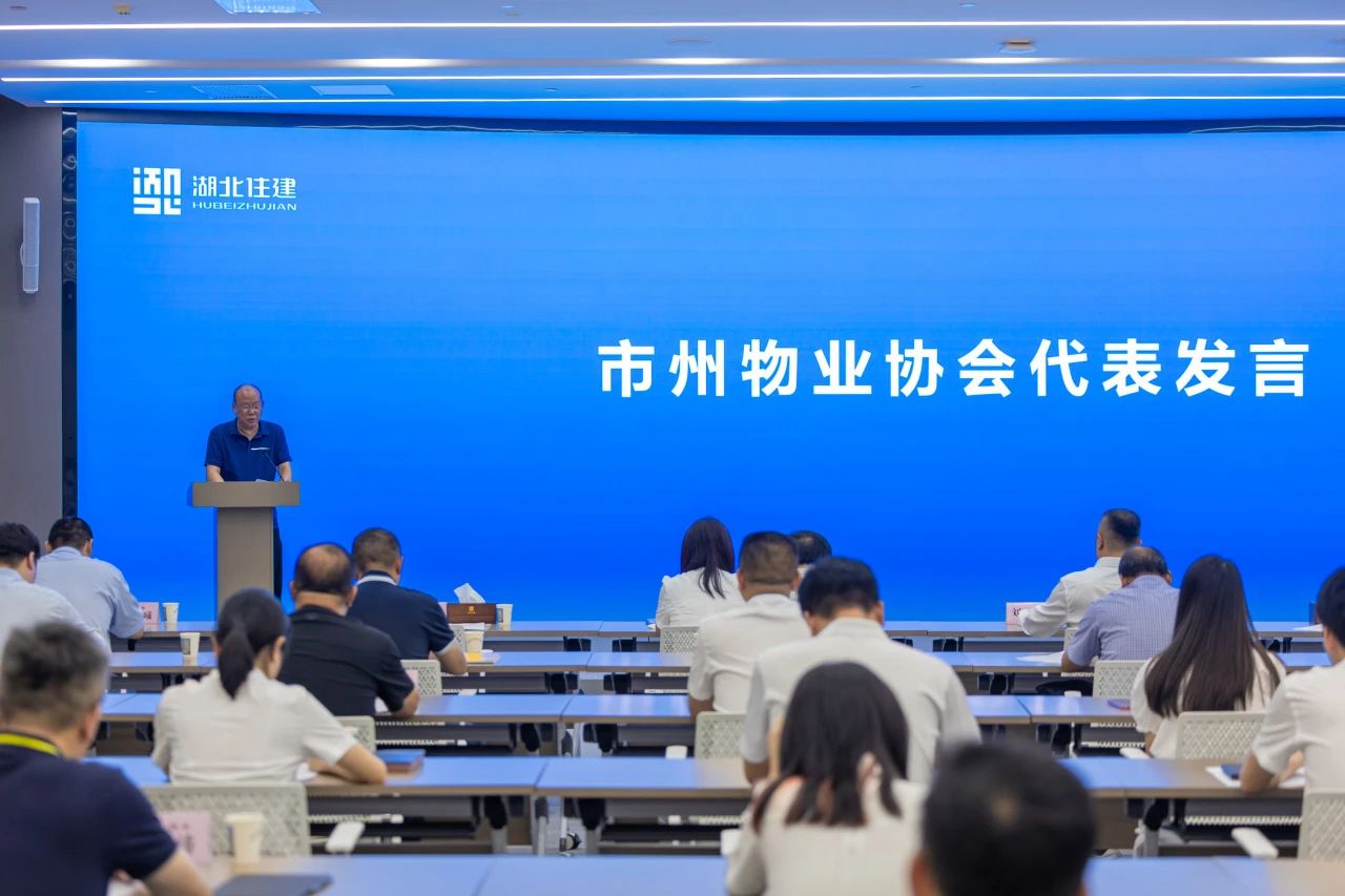 武汉市物协当值会长万红和湖北襄投物业管理有限公司代表各市州物业协会和物业企业发言,表示坚决拥护、积极响应、全力推动倡议落实。
