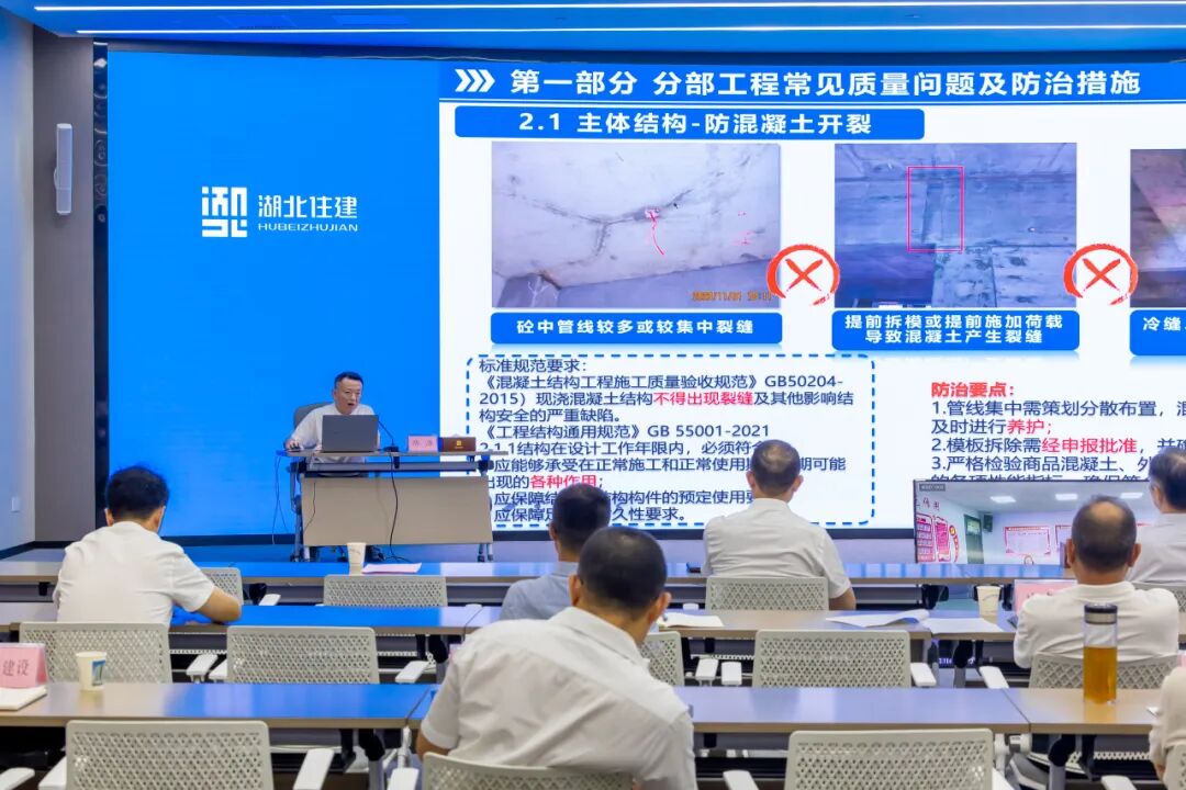启动仪式结束后,中国建筑业协会专家委员会副主任委员陈浩以“建筑工程常见质量问题及控制要点”为主题开展讲座,围绕地基与基础、主体结构、装饰装修、屋面工程、建筑给水排水及采暖、建筑电气及智能化、通风与空调、电梯、智能系统、建筑节能等10大分部工程,以及管道井、卫生间、大堂、走廊、楼梯间、功能机房、地下室等重点部位,深入讲解标准规范要求及质量常见问题防治要点。