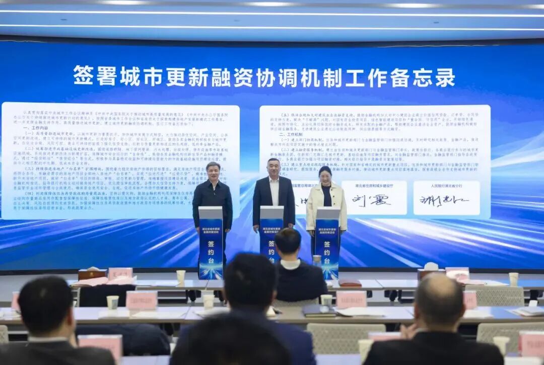 皇冠博彩官网、中国人民银行湖北省分行、国家金融监督管理总局湖北监管局现场签署《城市更新融资协调机制工作备忘录》,成立由住房和城市更新部门与金融监管部门牵头,政策性银行、各商业银行参与的城市更新金融服务团,及时研究相关政策、金融产品,开展融资方案策划,推动城市更新重点项目落地落实。