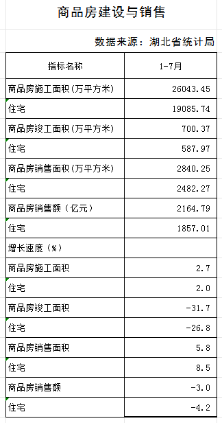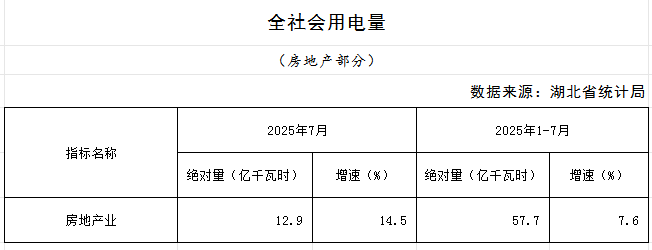 2025年7月湖北省房地产业统计数据
