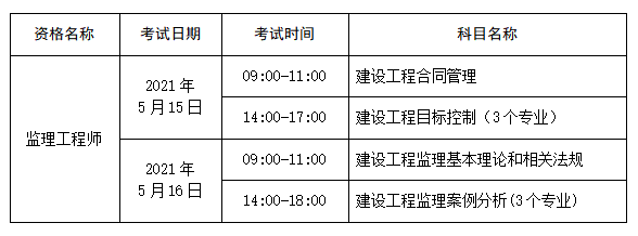 根据人力资源和社会保障部人事考试中心《关于做好2021年度监理工程师职业资格考试考务工作的通知》(人考中心函〔2021〕5号)文件精神,为做好我省2021年度监理工程师职业资格考试工作,现将有关事项通知如下:
