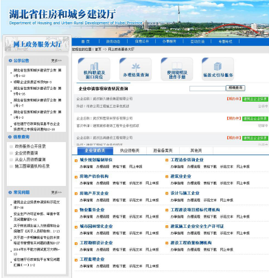 (一)推进行政权力清单公开。在门户网站增设了“权责清单”栏目,依法向社会公开了行政许可、行政处罚、行政征收、行政检查、行政确认、行政奖励及其他类的法律依据、实施主体、运行流程、监督方式等信息;对于承担的行政审批事项,通过门户网站“网上政务服务大厅”栏目,发布了政务服务公开目录(行政审批项目一览表)、住建企业资质资格审查公示公告、企业资质查询、从业人员资质查询、办事指南、办理流程、行政审批项目示范文本、相关政策法规及文件等信息。2015年,共发布资质审查公示121批、公告159批。