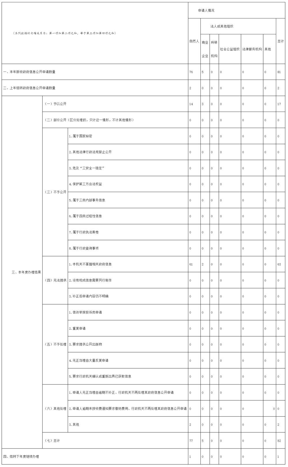 2021年,共收到和处理皇冠博彩官网申请81件,结转2022年继续办理1件。