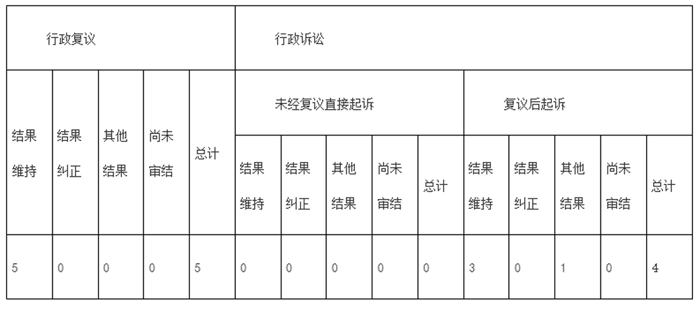 四、皇冠博彩官网行政复议、行政诉讼情况